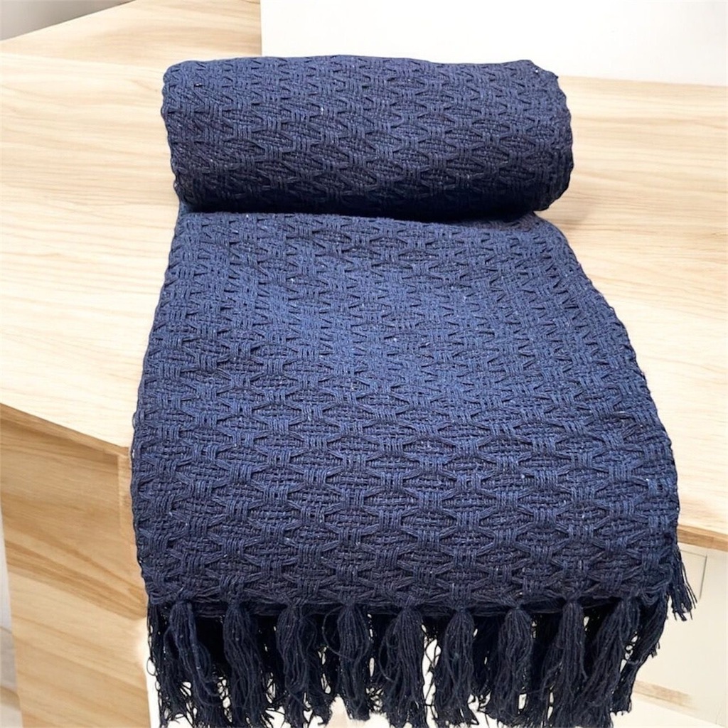 Manta para Sofá Trabalhada Azul Marinho